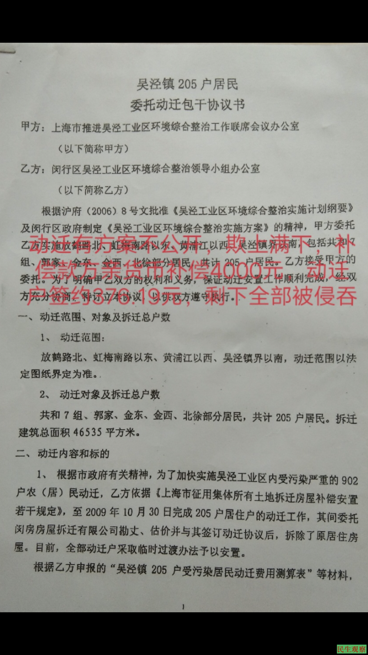 我是中华人民共和国的公民,吴泾镇政府如此害怕我,报复我,到底是为什么呢?2009年4月29日,在没有任何动迁手续、房屋拆迁许可证以及其它相关法律文件“三无”的情况下,由上海市闵行区吴泾镇人民政府官员,镇党委书记朱国兰与副书记谈国庆打着“实施环保动迁”的旗号,自营开发公司,简称:(吴泾镇开发办公室)利用权贵,官商勾结、层层转包、操纵动用黑恶势力威逼利诱、半夜砸铁门、断水断电、恐吓等手段,将我家永久性私有宅基地和550平方米房屋进行抢拆,侵犯了我家的合法权益。事实与证据如下: