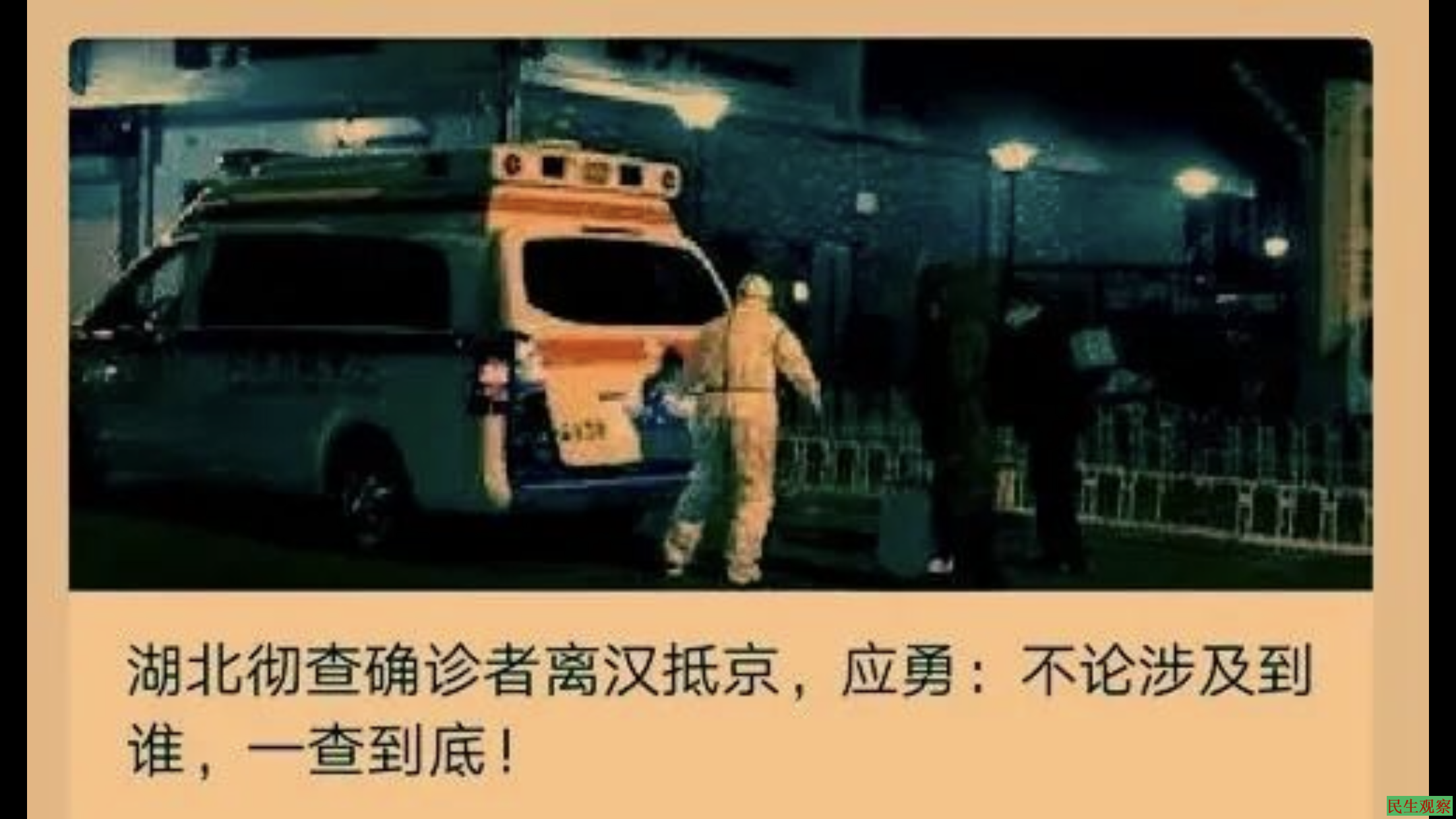 在如此严格的防控政策下,该女家属是如何做到驾车驶入武汉市的?又是如何将一名已经发热5天的病患带出武汉市的?一路一千多公里,沿途检疫站密集,他们又是如何突破层层关卡进入北京市的呢?武汉疫情爆发后,各地都禁止从武汉驶出的车辆进城(有公务通行证的除外),北京市入城检查站的警方是如何放行武汉来车的呢?难道因为私接人真是重大公务?