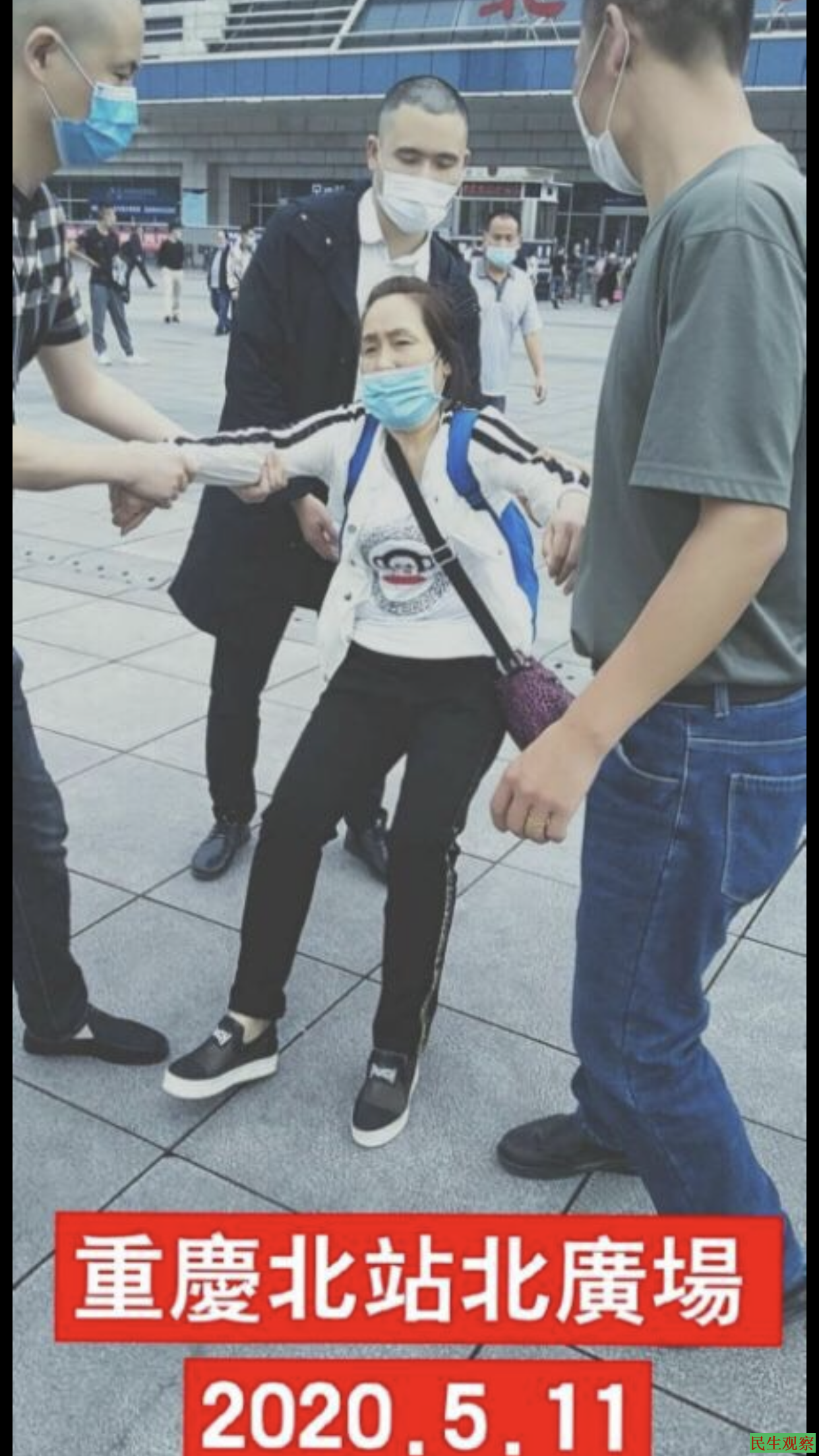 【民生观察2020年5月17日消息】本网获悉,今天下午15时许,重庆维权人士赵群珍丶杨长华丶陈兰在重庆火车北站多名警察拦截,后她们被辖区维稳人员控制。