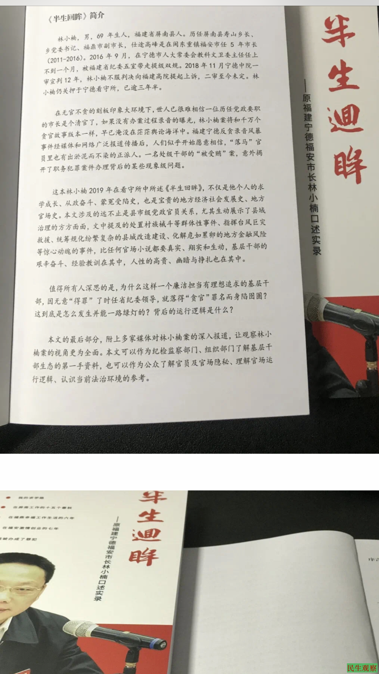林小华反映,其于2020年6月9日上午,通过EMS全球邮政特快专递服务平台向最高人民检察院、最高人民法院以及中央纪委相关部门领导邮寄了52套林小楠案举报申诉材料。该材料主要内容为林小楠所写的个人成长及从政经历,以及蒙冤情况反映材料,也包括一些媒体对林小楠案的报道及评论。为方便领导及关心该案的人们查阅材料,了解林小楠案案情,林小华将这些材料装订成册,并命名为《半生回眸》。