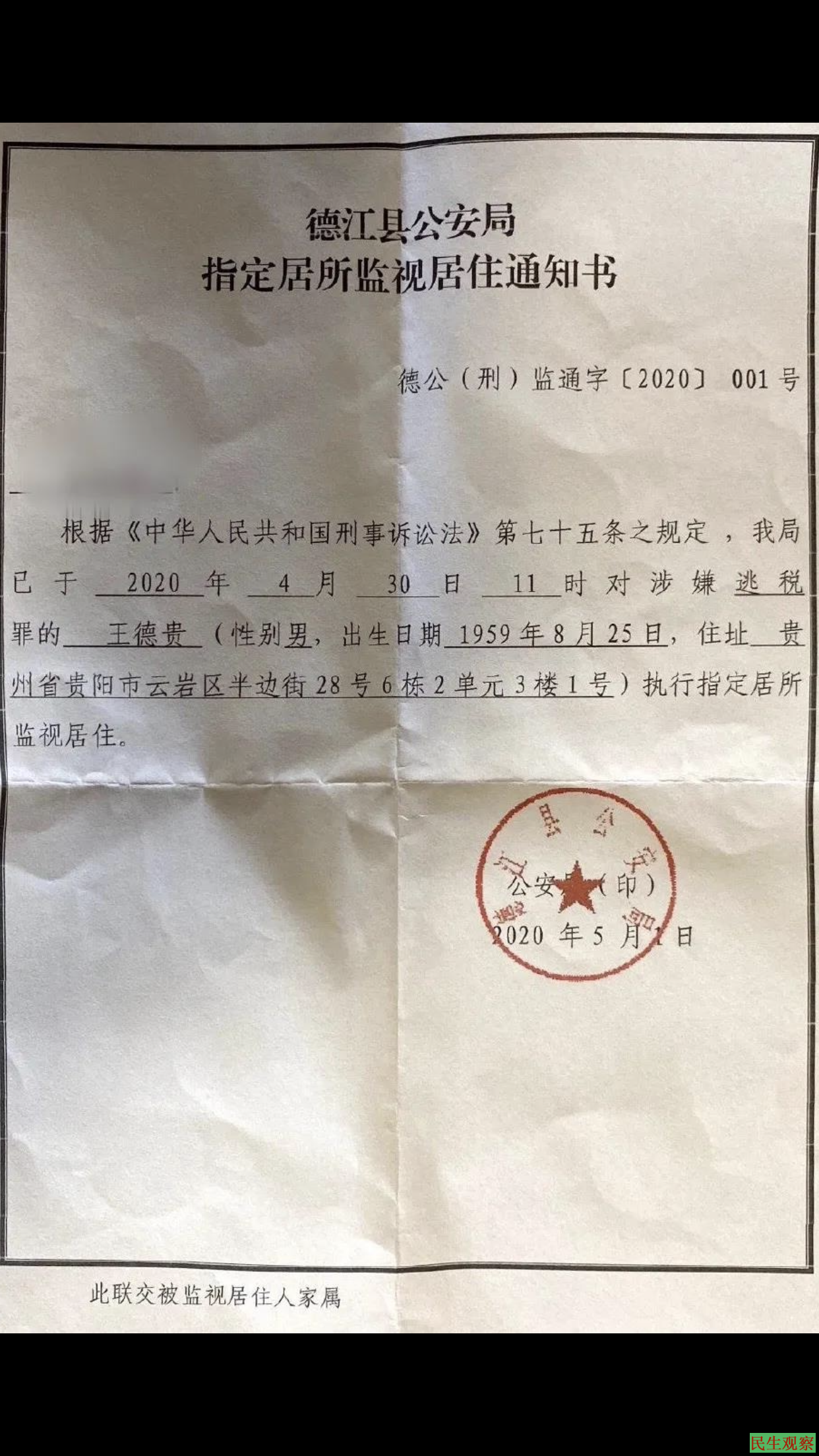 2020年7月2日,德江县公安局以王德贵涉嫌高利转贷罪对其刑事拘留并送看守所羁押,离开了监视居住处。