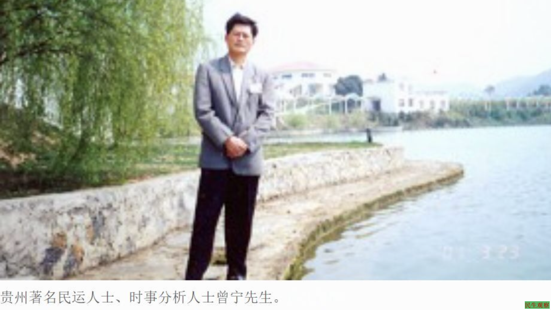 曾宁的好友重庆民主党人许先生告诉本网,曾宁是贵州著名民运人士,1998年他参与了贵州省组建中国民主党活动,因此他常年被贵州政治警察稳控,也因此时常被警察抓走拘禁。