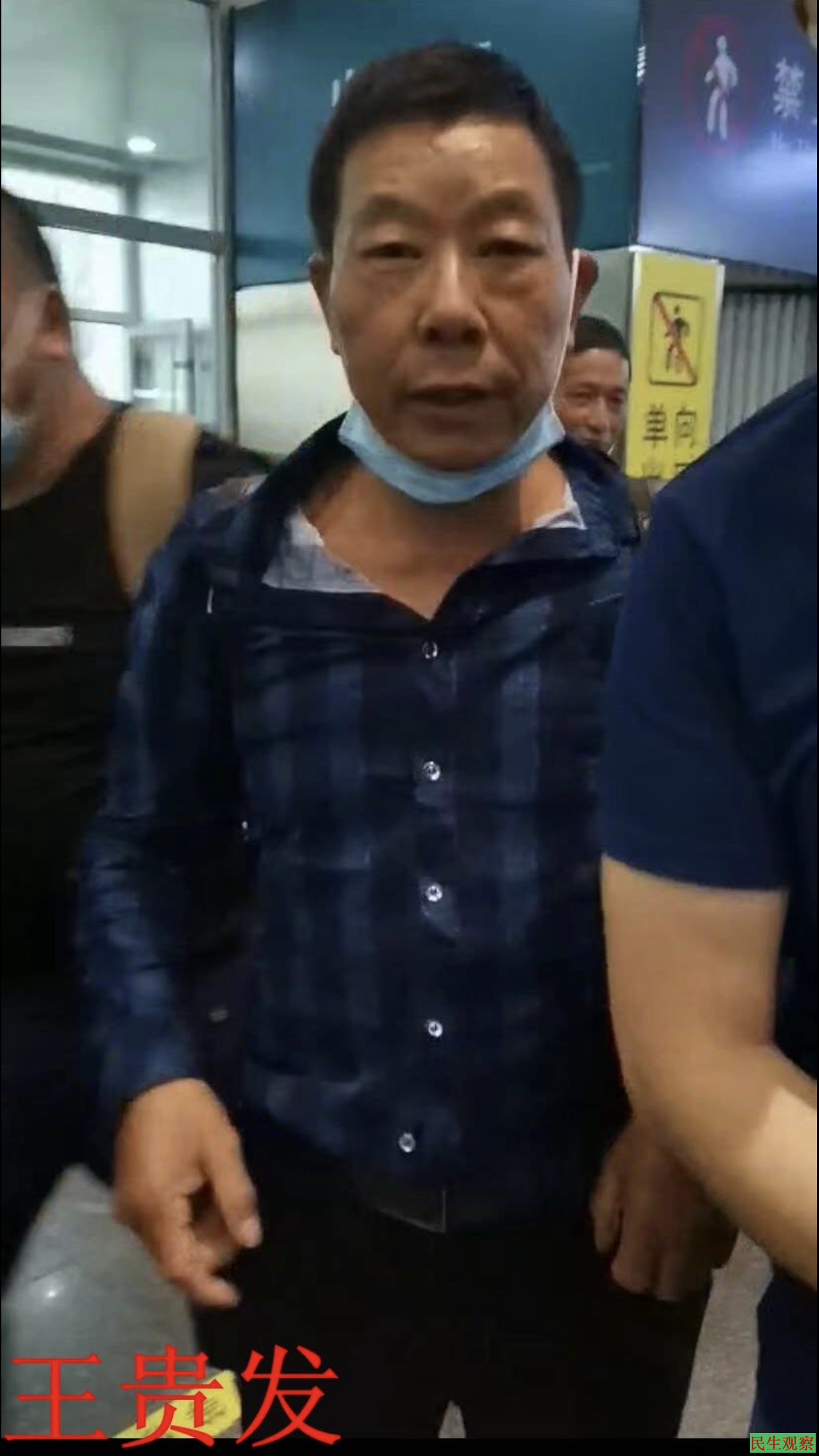 根据现场视频,这位访民自我介绍叫王贵发(音),是浙江省绍兴市前清街道清风村人。今天刚到北京,在出北京南站时遭到不明身份人员二三十人截访围殴。