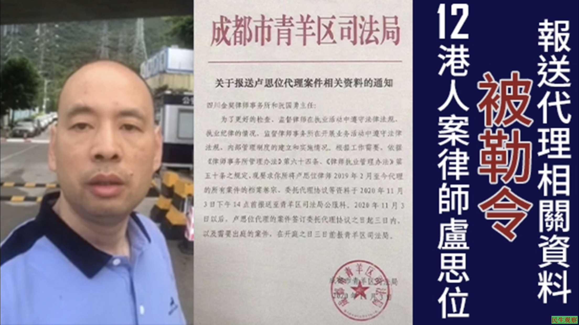 据悉,卢思位是四川省知名人权律师,办理过成都纪念“八九六四”酒案,是成都“四君子”之一张隽勇的辩护人,还办理过广西律师陈家鸿“煽动颠覆国家政权案”,因此遭受四川司法当局和律师协会打压和处分。