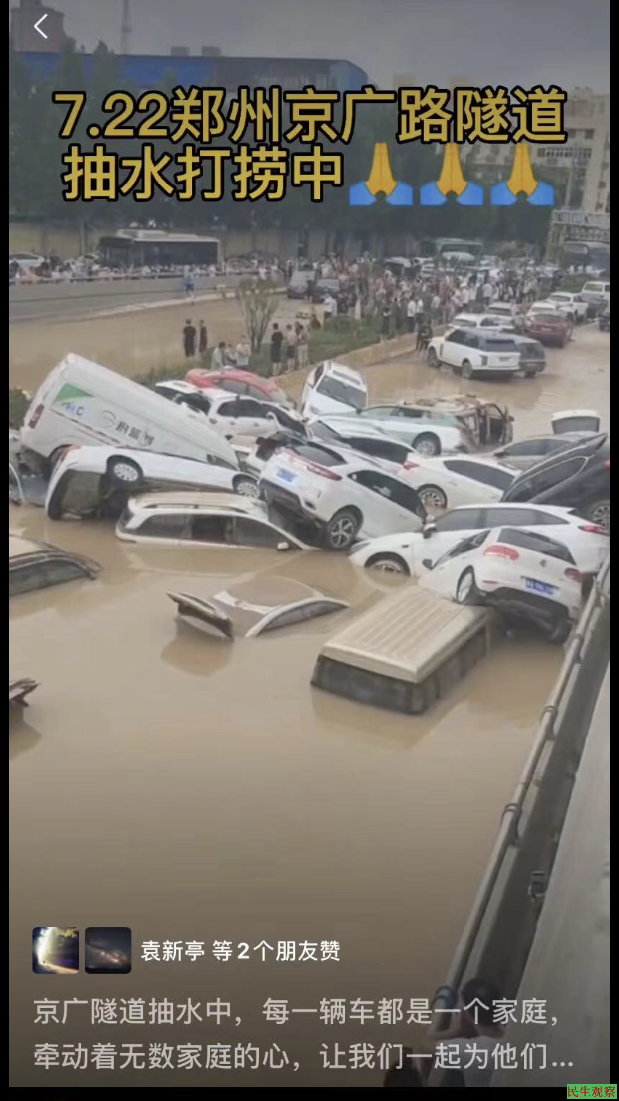 b、网友吕千荣:这是雨后抽干的郑州京广路隧道五公里被一分钟淹没的出口救援现场,有多少辆车被淹?有多少人被淹死?现场视频可清楚的看到千分之九百九十九的车门都没有打开,有的一车就死了几人,这是天灾下的祸,郑州气象局7月20日1天7次红色暴雨预警!领导们都干什么去了?职能部门和工作人员都干什么去了?政府对自然灾害的预警预案呢?呼吁全面公开郑州和河南暴雨洪灾真相,严查人祸责任人。