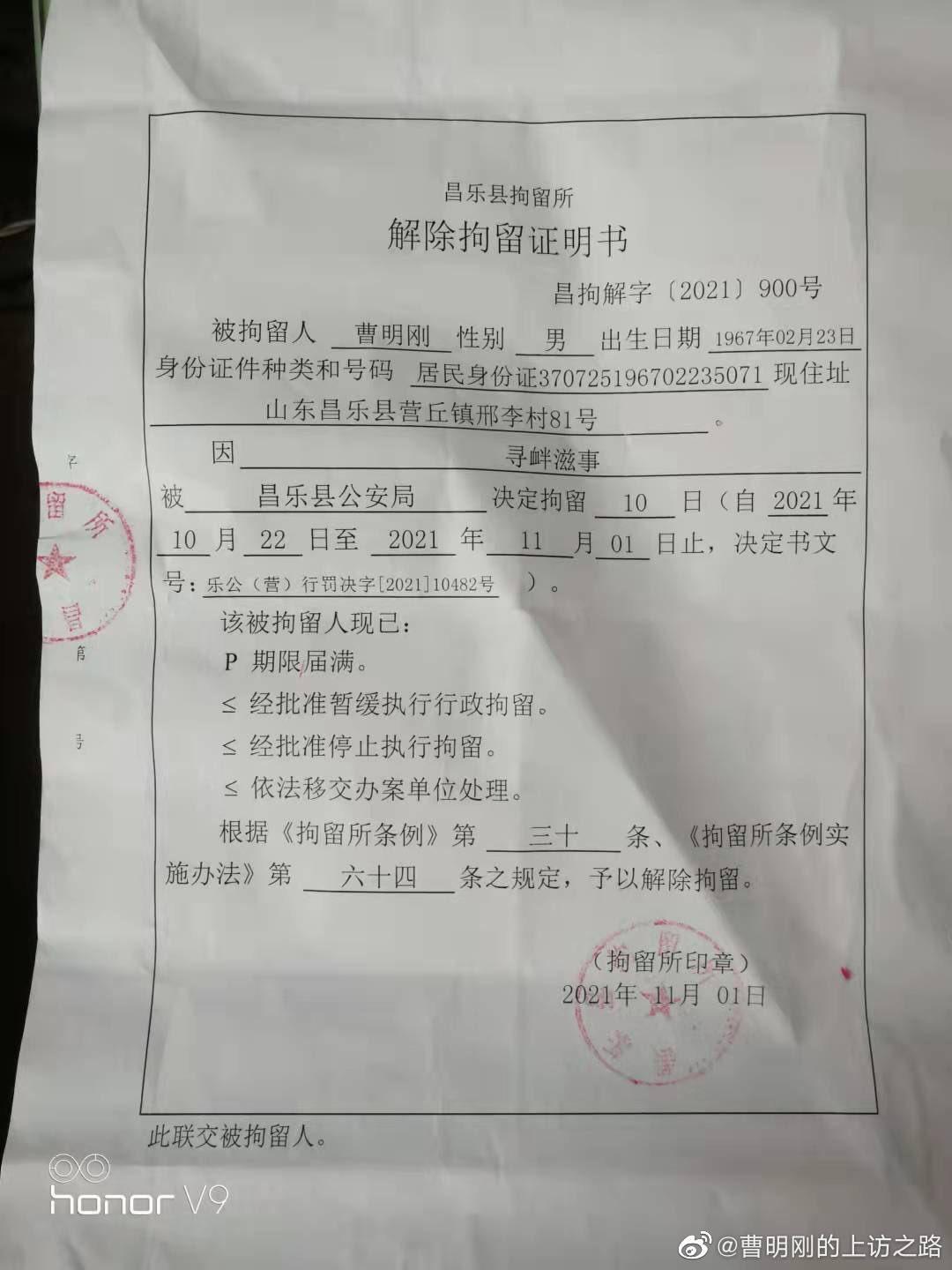 山东曹明刚至今被限制人身自由 |