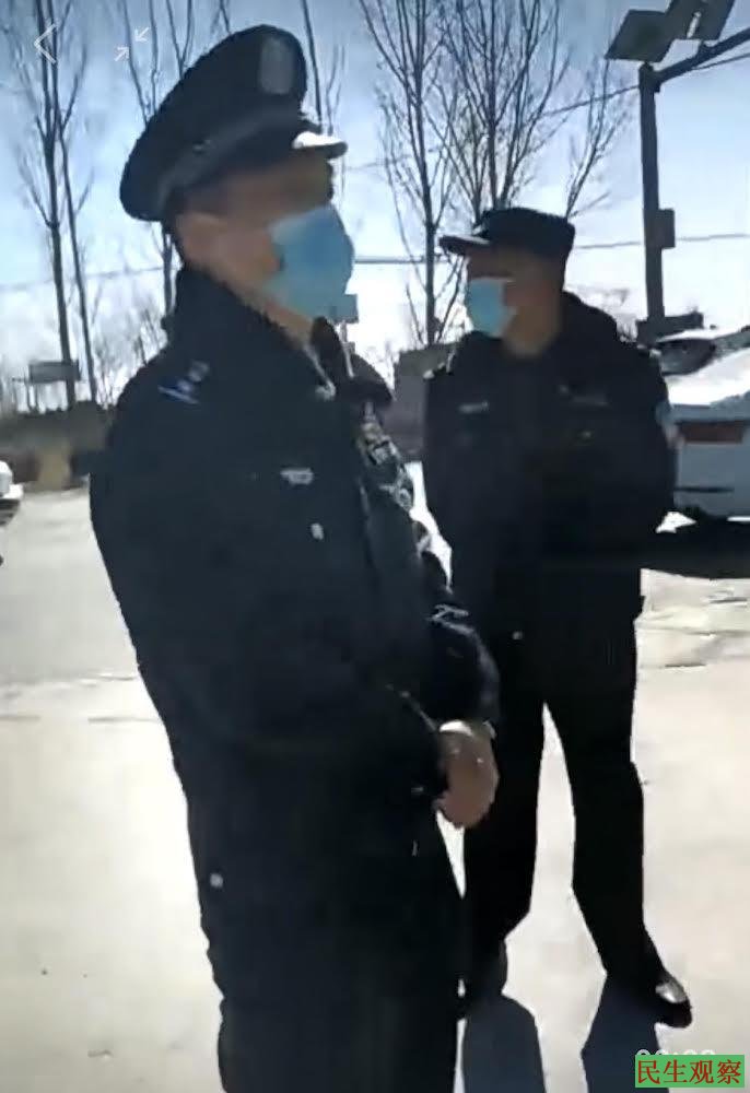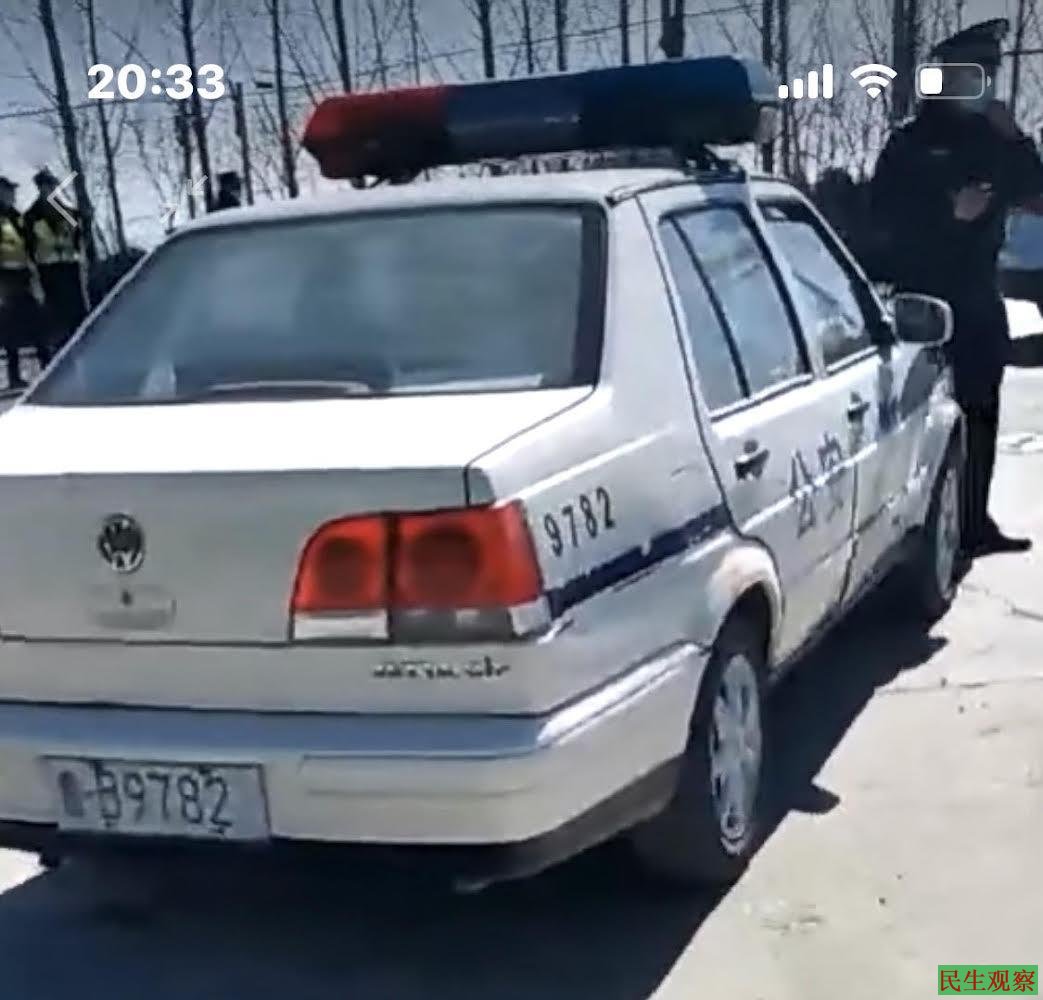 我们现在又遭到平度市的打击报复了,他们又开始阻扰我们了,我们就是到潍坊给孩子打个防疫落个户口,然后他们不让我们出去,这个是一个鲁B9782的一个警车,这个是云山的一个工作人员警号是113743,还有一个是云山派出所的所长刘所,他的警号是158165,还有一个警号是023404,也是云山派出所的。