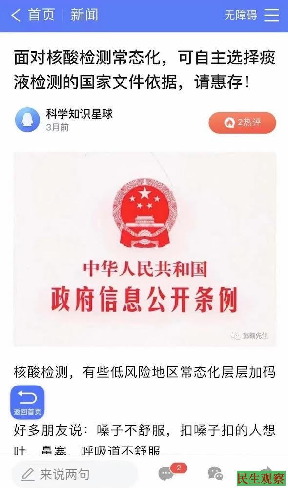 有律师指出:痰液检测,是国家卫健委明确规定的核酸检测方法,公民有权利选择核酸检测方法,相应地核酸检测机构有义务,保障公民的选择权利。