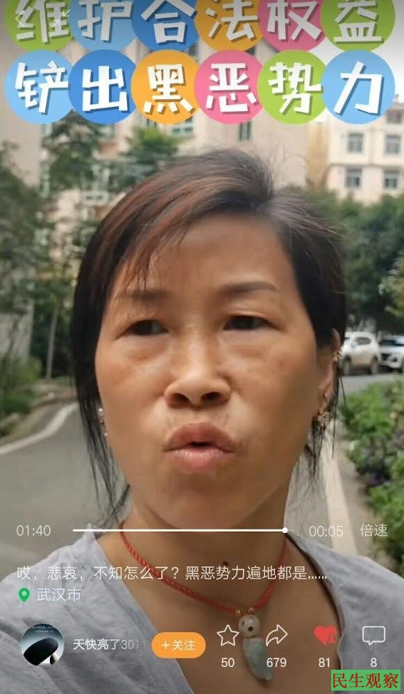 【民生观察2022年6月21日消息】湖北省党代会召开湖北武汉市东西湖区访民任春华,被当局多人非法限制人身自由,任春华录制视频显示多人在她家门口周围监控她的一切行动,视频显示:大标题·维护合法权益铲出黑恶势力!视频字幕显示:湖北省武汉市东西湖区吴家山街文家湾社区孙红梅主任13006382310,早上9点左右带领一群黑恶势力人员,来我家门口威胁,非法监视居住,限制人身自由。严重声明:本人任春华及家人出现任何意外不测,一定是吴家山街道办事处主要负责人一把手李平所作所为,负法律一切责任。感恩转发,中国湖北省武汉市东西湖区公民·任春华。