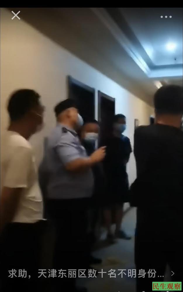据刘忠南发出消息说,2022年7月2日早晨到现在,天津市东丽区几十个人在北京朝阳区十八里店玉轩阁酒店,穿着便衣,不明身份,也没有出示任何身份证件,到宾馆涉嫌非法绑架,现求助各界人士,恳请关注转发,帮助报警。