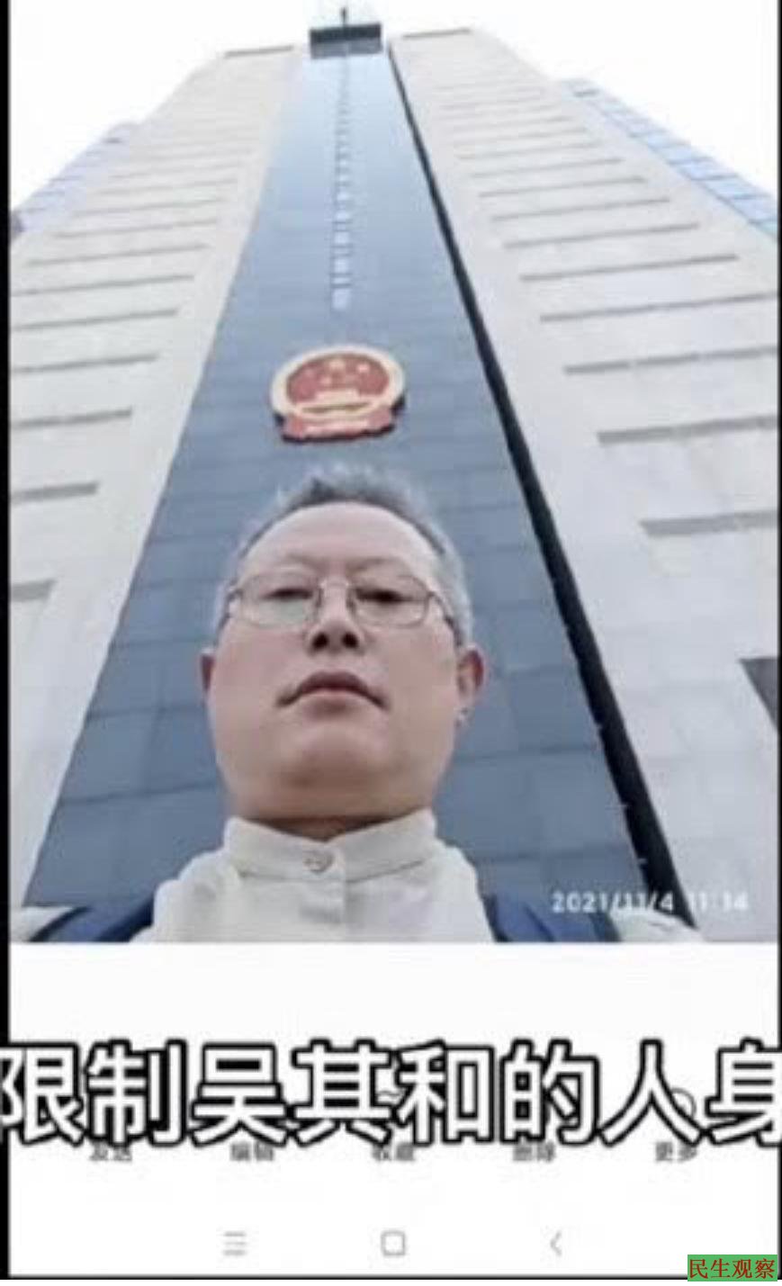 据吴其和说:“江苏省苏州市姑苏区汇翠花园20栋206室,楼下有八名不明身份的人士上门寻衅滋事,非法限制我的人身自由,时间从2023年1月5日到至今。期间,我拨打110电话近百次无人出警。”