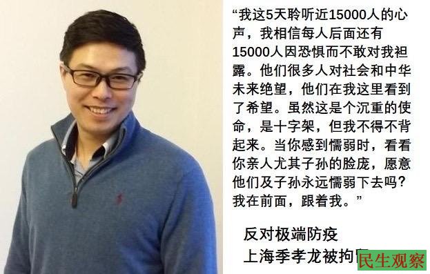 季孝龙说,自己在2022年4月就上海疫情封城在网上呼吁关注民生后被连续传唤,直至刑拘,自己并不后悔。就算是一群动物,当意识到危险临近的时候,其中一只也会自发发出警示的声音,何况一个人了。