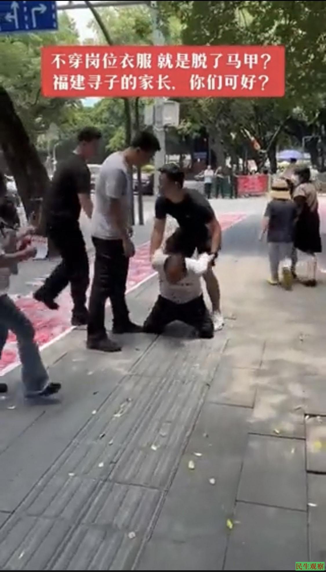 【民生观察2023年7月15日消息】近日,越战老兵陈育信和家人在福建省福州市街头寻找被拐儿子,引起许多路人的围观和直播,随后夫妻二人遭到城管的驱赶,警察到场后将陈育信拖入围挡并打倒在地。据悉,陈育信和妻子在全国已经寻子多年,曾多次向有关部门寻求帮助均无果。