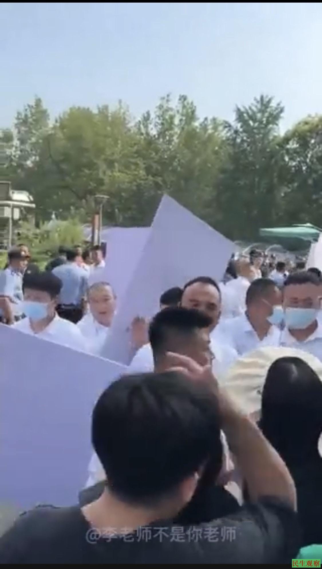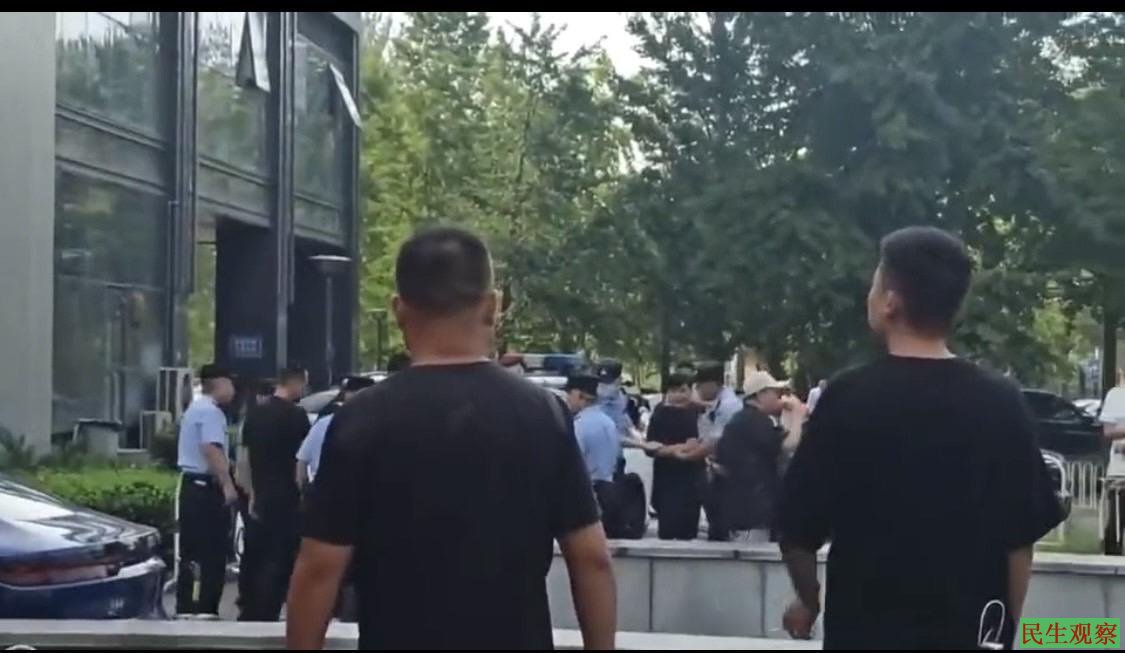 2023年9月4日,北京朝阳区受中植系暴雷影响,大批民众前往中植集团总部楼下维权,现场遭遇不明身份的白衣人殴打,并在过程中用白色挡板遮挡周围人拍照。一旁围观的警察并未制止白衣人的暴力行为。