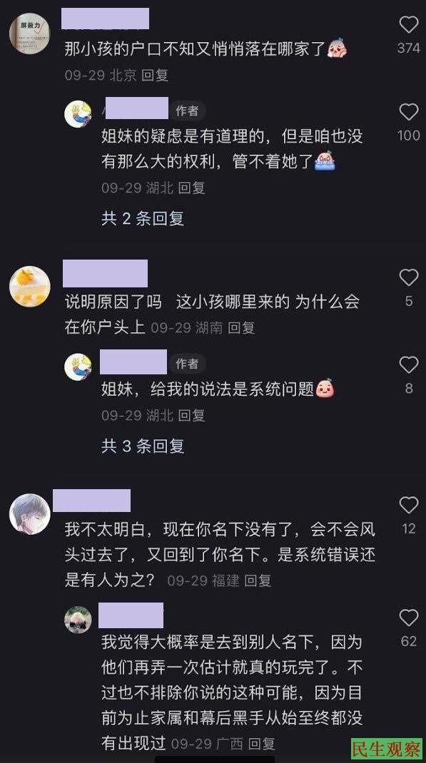 【民生观察2023年10月15日消息】近日,小红书上一名深圳女用户去办理房产过户手续过程中,发现自己户口名下无缘无故多出不认识的2021年出生的女孩。自己打电话投诉后被相关部门踢皮球。