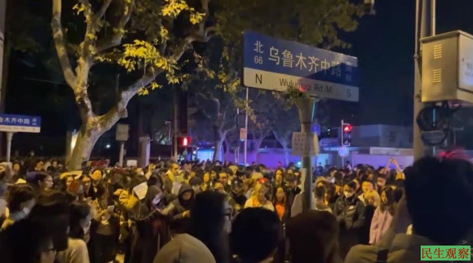 《乌鲁木齐中路》记录片中年青人的吼声:“取消健康码!要艺术不要封闭!还我人权!公开死亡人数!不要欺骗人民!言论自由!新闻自由!要尊严,要自由!平反六四!中华民族到了最危险的时候!打倒独裁国贼!要自由,不要共产党!不要独裁要民主!习近平下台!共产党下台!不做奴才做公民!权力属于人民!独裁可耻!我们要选票!我要做公民!…警察为人民服务,为什么站在人民对立面?!”