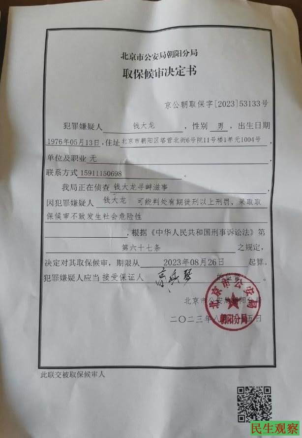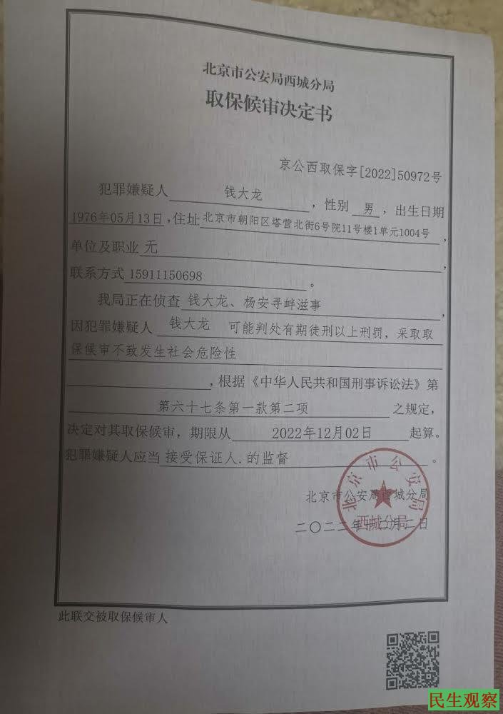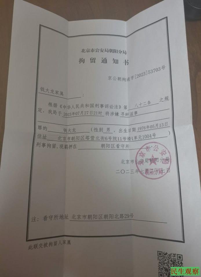 近日,中国新冠疫苗受害吹哨人之一的北京朝阳区居民钱大龙在社交媒体爆出,因揭露新冠疫苗致死、致病、致残维权被打压迫害两次刑拘取保,因病残无法正常工作,缺医少药,生活极度困难,北京市政府对疫苗受害解决问题只会推诿扯皮、打压迫害、禁止发声,只因为在微信群聊天就把一个残疾人刑拘一个月取保候审限制人身自由两年。马上面临两会维稳又要被警察24小时上岗限制人身自由,他说欢迎两会期间人大代表、政协委员、记者朋友们上门走访,观摩一下疫苗受害者如何在这种社会高压环境下生存的!