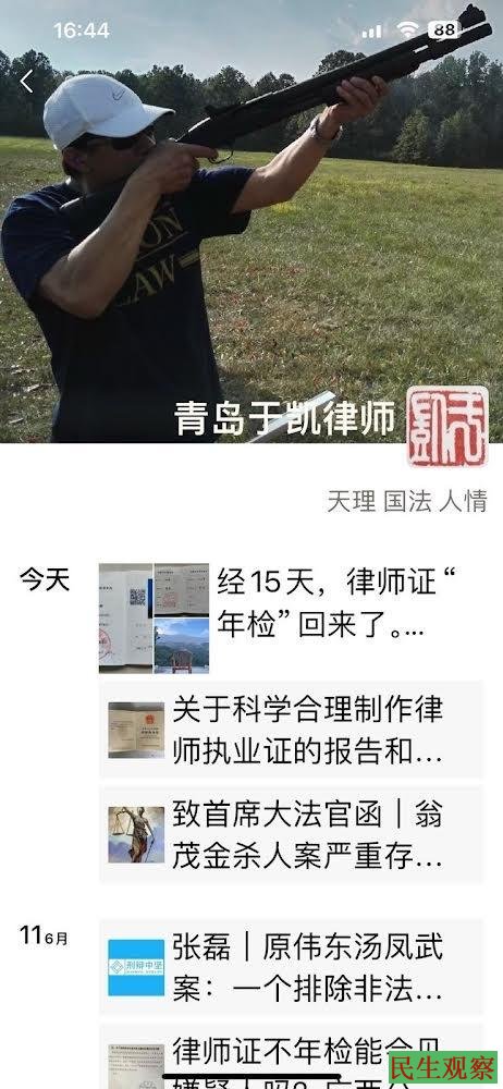 【民生观察2024年6月17日消息】近日,青岛于凯律师因张文鹏实习事件,被青岛市司法局报复不予通过年度考核。