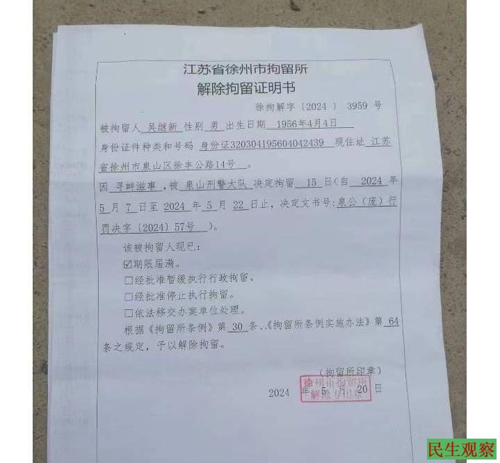 2015年8月23日北京市公安局治安总队把吴继新交给泉山区公安分局庞庄派出所,被刑拘三个月之前当时在北京捡垃圾里东西变质过期的吃,得了一个肺部感染,在徐州市看守所里关押,马医生(公安)要打吴继新没打,检查病情后不给治疗因为吴继新没有钱(2024年9月又刑事拘留)吴继新被刑拘时有病那个马医生(公安不给约吃还要给吴继新下毒,管教不同意没能下毒),吴继新对庞庄派出所说你们别逼我,如果你们逼我我喊打倒共产党,就这样没有阻止庞庄派出所违法,庞庄派出所想办假鉴定送神经病院未成,神经病院专家当吴继新说对派出所付振永副所长说:他告的不是上面是告的下面。神经病院专家当看付振永副所方对吴继新说:你的要求别太高,看给你多少钱就完事了。