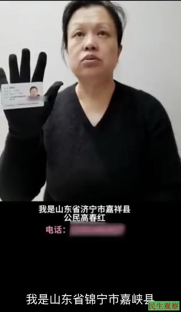 据高春红发出的一段视频显示,高春红,山东省济宁市嘉祥县公民。现实名举报山东省济宁市嘉祥县公安局刑侦大队长张克霞、锦宁市公安局经开区分局一派出所所长张峰,二人以刑事处罚相威胁,对其敲诈勒索600万元。