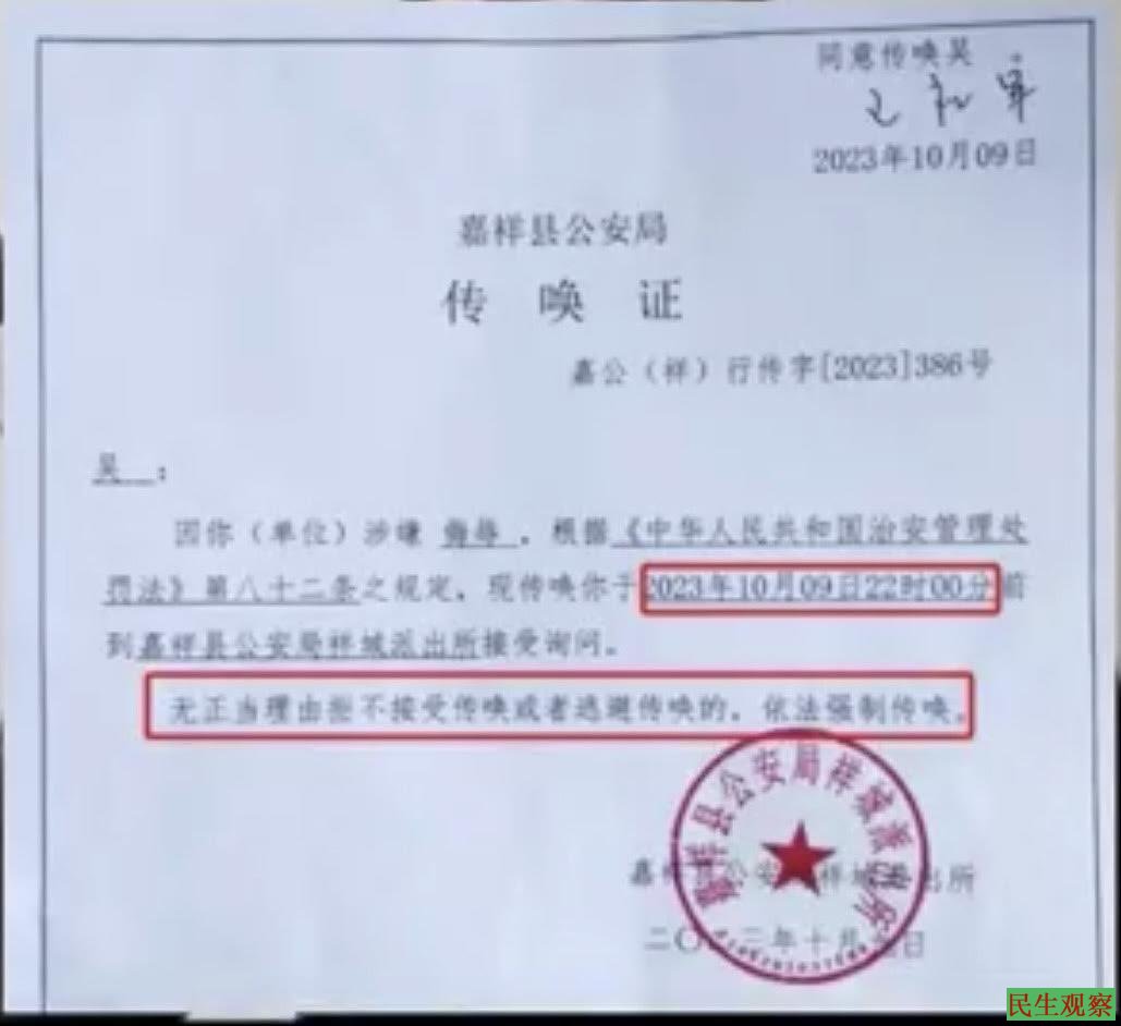 2023年10月9日,在没有人报案和没有违法事实的情况下,警察又要传唤高春红的女儿,以此进一步逼迫高春红交出钱财。