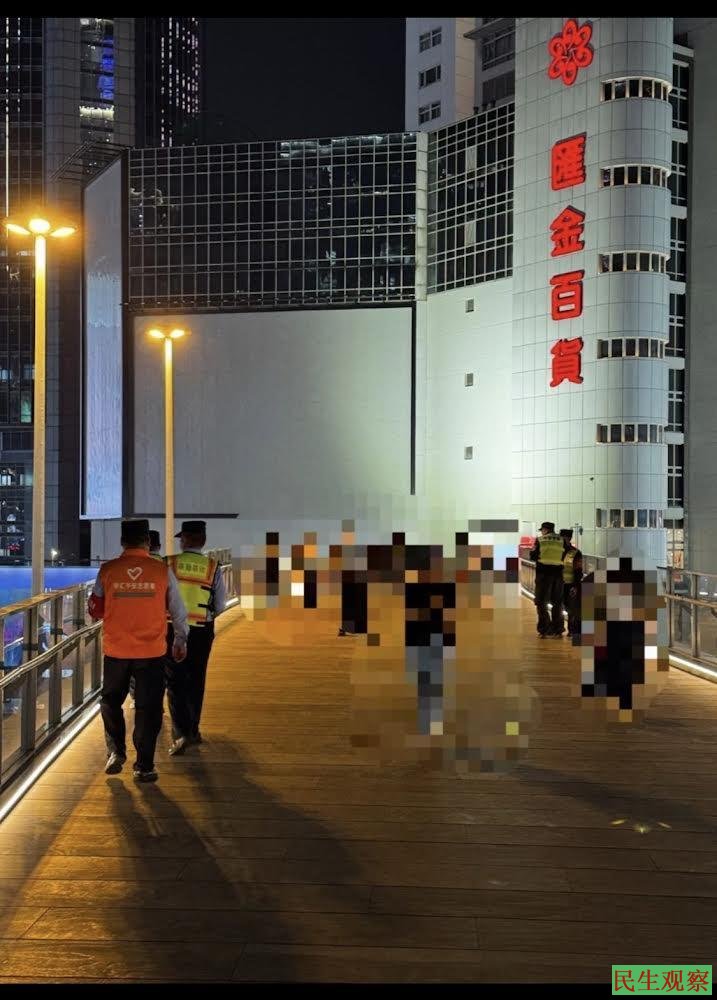 6月4日晚,上海徐家汇天桥上被安排6名守桥员。