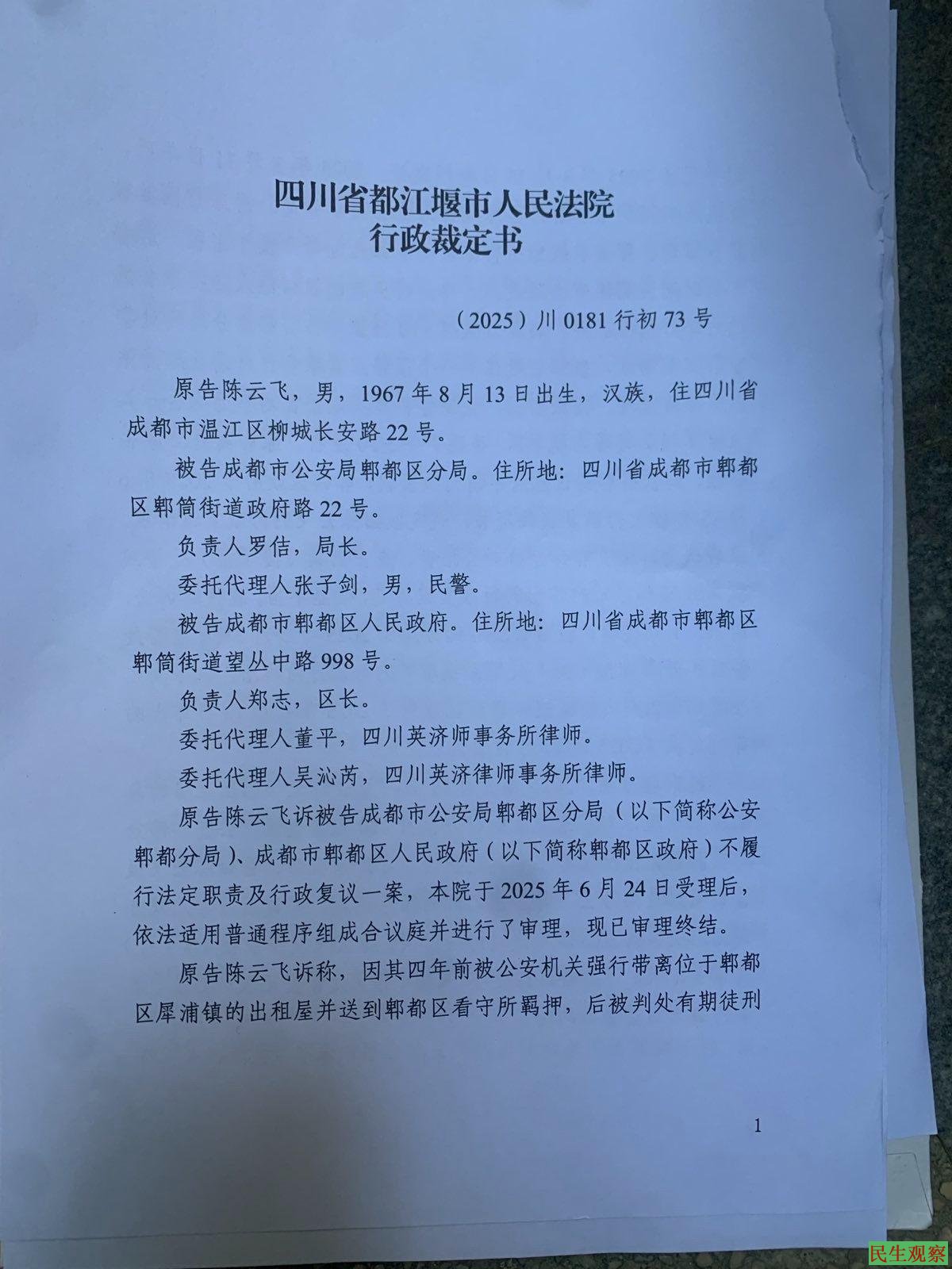 于是陈先生提起行政复议,然后行政诉讼到都江堰法院。
