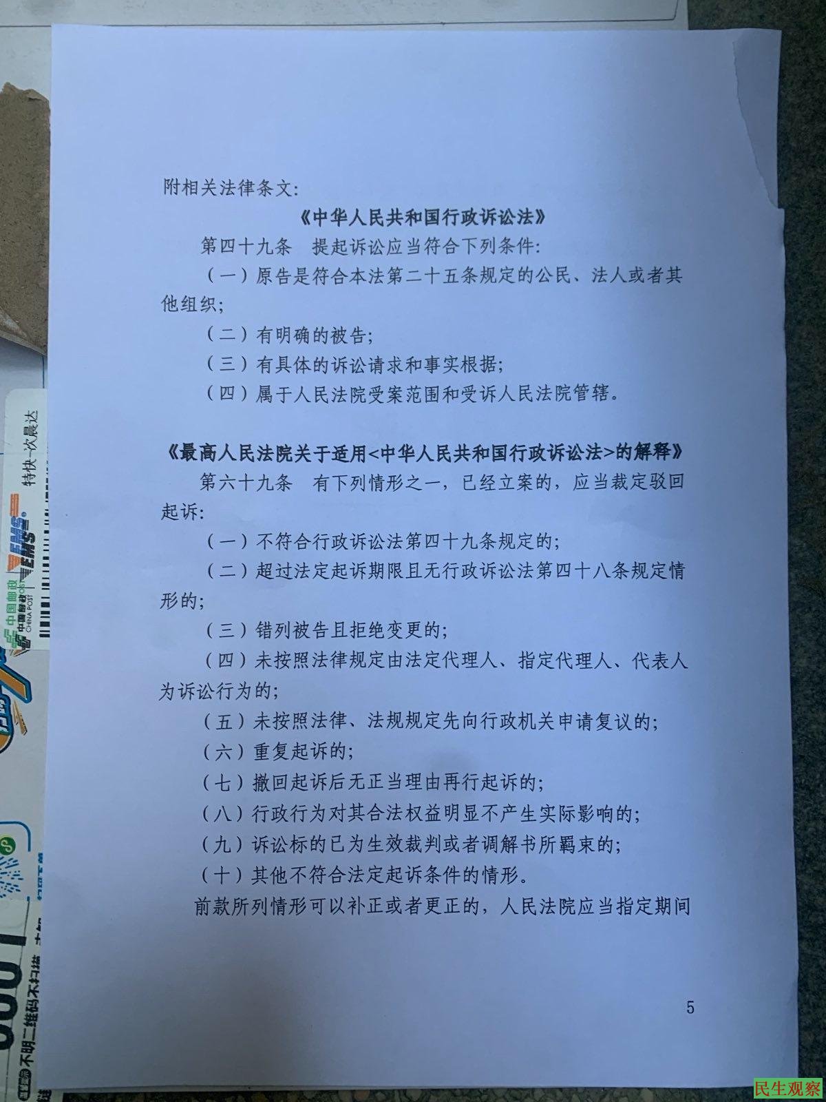 9月19日,成都都江堰人民法院书面给陈先生邮了个驳回起诉的裁定!