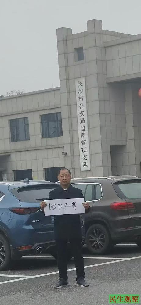 山东的于凯律师在得知谢阳情况后,于今年的元宵节当天特意赶往湖南,在长沙市公安局监所管理支队门口举牌声援被非法囚禁1515天的谢阳律师。
