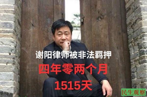 【民生观察2026年3月7日消息】人权律师谢阳被控煽动颠覆国家政权罪,现羁押在长沙市第一看守所,案件虽已开庭但一直没有结果,此前律师申请辩护人资格遭拒。截止2026年3月6日,谢阳律师已被中共当局非法羁押1515天。