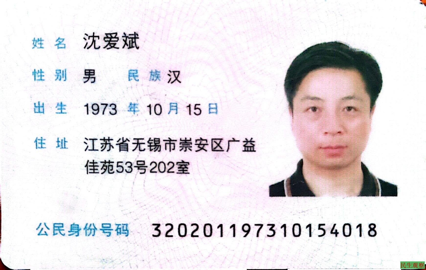 中共无锡正在对人权捍卫者沈爱斌实施滥权迫害