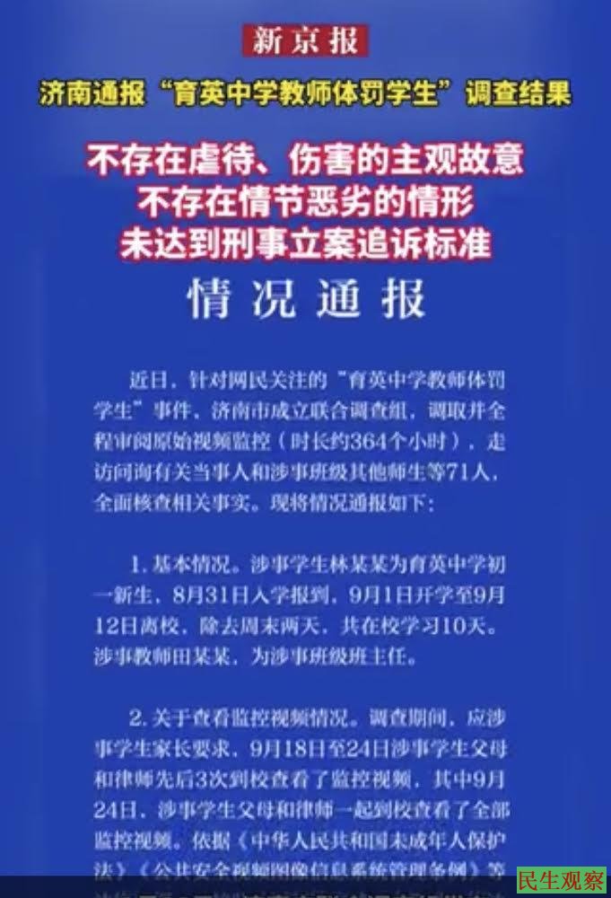 2025年9月26日,济南市联合调查组发布通报,认定“扇耳光不实”,并以“涉未成年人隐私”为由拒绝公开监控视频。这份通报与家长方提供的视频证据形成鲜明对比,引发舆论哗然。