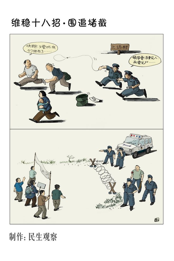 维稳十八招系列漫画与行为艺术——“围追堵截”