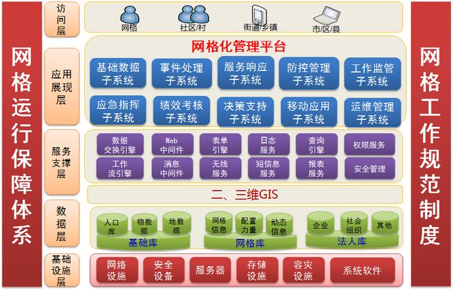 网格化就是将城区行政性地划分为一个个的“网格”,使这些网格成为政府管理基层社会的单元,加强社会控制能力。网格内所有固定物都被一一编码、定位,网格内所发生的任何治安、刑事案件、群体性抗议、敏感人物活动等均被分类、编码,被随时采集和报告,并以此数据为基础布置各种监控设备。如北京东城区把所辖区域划分成若干网格状的单元,由专门的网格工作人员对社区实施24小时动态、全方位管理。福建省规定城市社区原则上以街巷定界,按300—500户或1000人左右划分网格;农村社区按村民小组或自然村为界,不交叉重叠、不留空白区域。7月2日广州市城市社区网格化全面启动,以每个网格涵盖200户,1000人左右,将这座拥有1200多万人口的特大城市,划分为20777个基础网格,网格员要做到“小事不出格,大事不出街”。