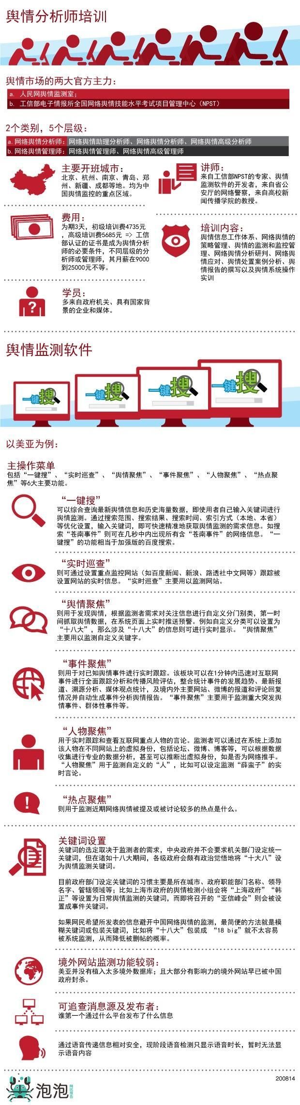 对于至今尚未获得言论自由的中国人而言,互联网是目前争取言论自由、表达自由的最主要战场。而随着Twitter、微博、微信等网络社交新媒体的出现,更对极权构成了强烈的挑战,为中国的反对运动提供了最重要的平台。为此当局采用了以下手段监控网络、限制言论传播:一、强化网络监控的最主要工具----臭名昭著的“国家防火墙(GFW)”,封锁屏蔽境外关于人权、自由、民主的言论信息。Facebook、YouTube、Twitter等网络新媒体在中国都被禁止访问。二、实施世界上最严厉的网络控制制度,强迫网络媒体进行自我审查,以处罚、查禁、关闭、取缔措施惩罚那些违反控制规定者。三、雇用大量的网络警察和网络评论员(五毛)监控网络,审查公民言论,以“网络实名制”恐吓、阻止网民的自由言论,甚至拘捕、监禁和平表达观点的公民。