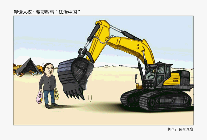 贾灵敏,今年50岁,是河南省郑州市二七区齐礼闫村,教师,曾在一所私立学校任教。2010年,贾灵敏所居住的齐礼闫村城中村改造,当年6月22日晚,贾灵敏和她丈夫被当地拆迁人员绑上一辆车,被拉到了郊外的樱桃沟。在那里呆了一天一夜之后,贾灵敏在23日中午回到家中,发现住宅被拆除。那次拆迁中,当地政府并未出示拆迁证和强制拆迁通知书。此后她拨打110报警无果,随后在废墟上搭建了窝棚居住,成为一个“钉子户”,在窝棚也多次遭遇强拆之后走上了依法维权之路。