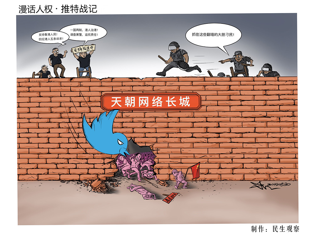 编按:社交媒体Twitter日前宣布关闭大量中文帐户,因有证据表明这些帐户是受到中共支持,它们主要针对香港近期示威进行虚假宣传。另一方面,当局不仅封杀网络讨论香港言论,将“反送中”甚至“香港”设为敏感词,而且公然传唤、威胁、拘押表达声援香港反送中运动的推友们。