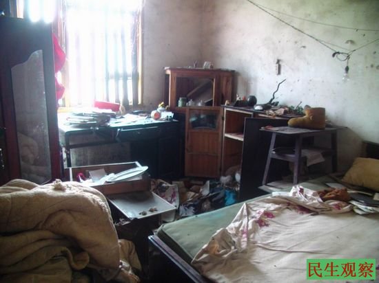 民生观察工作室2013-7-16消息:昨天,宜宾兴文县原教师进修学校76岁高龄的退休高级讲师周老师开始向政府多个有关部门举报:7月14日下午1点过,她返回自己在僰王山镇的家中时,被眼前的一幕惊呆了,只见自家房门四处洞开,屋内狼藉一片,稍微值钱的东西都被洗劫一空。“那情景就像文革时期被红卫兵抄家”,周老师感到阵阵悲凉。据他说,因为这里要拆迁,他从成都赶回来,上午才与兴文县教育局的领导商谈拆迁安置补偿的事宜。没想到,下午一回到家看到的就是这样一幅凄凉的让人伤心欲绝的情景。这让他既愤怒又困惑,不能不将此次洗劫与拆迁联系在一起。