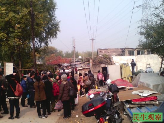 民生观察工作室2013-11-2消息:今天上午11点,近百访民来到北京巴沟,声援面临强拆的北京居民韩颖,亦有民主维权人士到场声援。