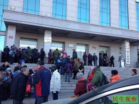 民生观察工作室2013-11-28消息:在北京的维权人士尹旭安今天上午十点半左右致电本工作室说,国土资源部前有二百多访民集会请愿,要见巡视组,访民们在现场高喊口号,还打有多条横幅。同时访民们还填表反映各自的土地问题,要求国土资源部严查强占农民土地的问题。