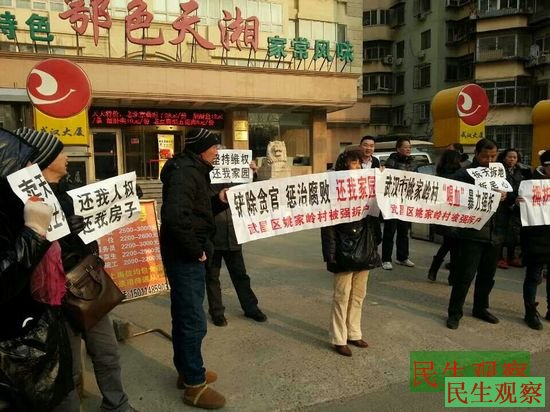这几天,拆迁户们去了政法委、住建部等多个部门,今天大家又到武汉驻京办抗议武昌区行政不作为,对被强拆户不闻不问,冷漠。