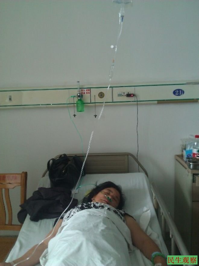 到医院后,盛庆丽被诊断头部被打了多个大包,初步检查卢脑多处受伤,具体伤情有待作CT后进一步确诊。盛庆丽的老公郭先生和其它朋友今天下午告诉本工作室,今天的打手他们其实以前就见过面,其中有一个未下车的叫李红的人员他们更认识,她是唐家墩拆迁办的工作人员。