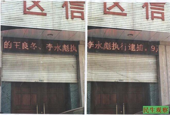 我向各个部门反应不仅毫无结果,黄岩区信访局还把我家人被逮捕的消息在他们局前的LED屏幕24小时不间断滚动示众。