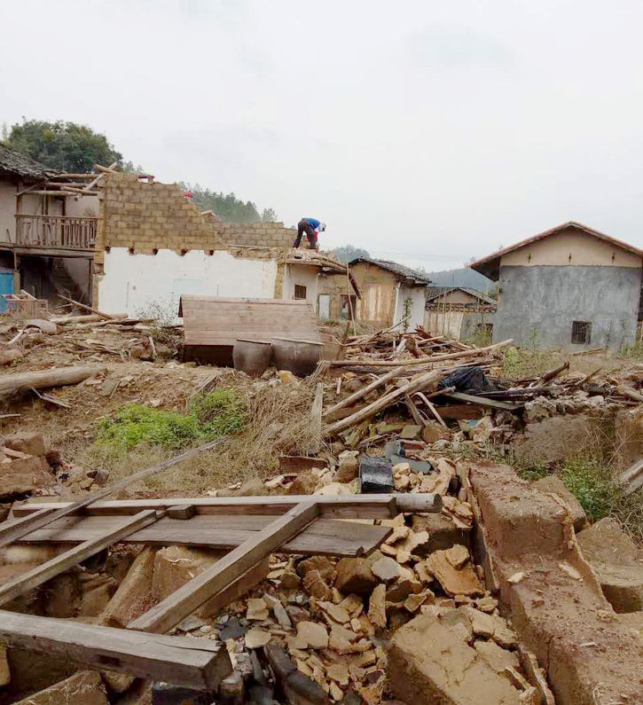 据村民钟宁、蔡桂英反映,昨天(11月24日),程龙镇镇政府党委书记殴忠平、纪检书记曹军、市场管理办公室主任王晓峰、司法所工作人员钟心恒等人,在国家三令五申必须严格依法依归征地拆迁的情况下,未履行任何合法手续就带着警车与多名警员、拆除工具及拆迁人员,将程龙镇龙秀村圳背小组钟宁、蔡桂英等村民的房屋强行拆除。