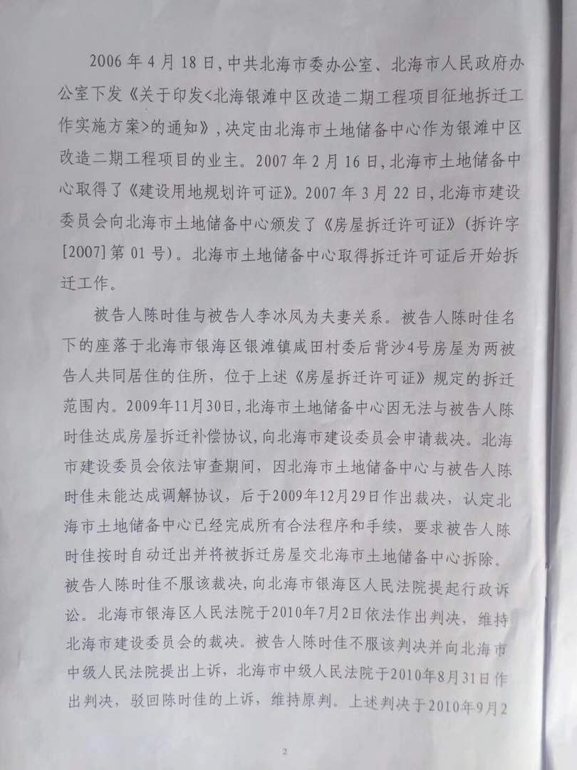 相关报道:“广西北海陈时佳、李冰凤抗强拆案”明日开庭