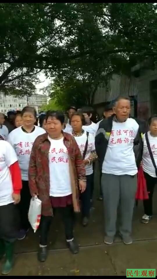 【民生观察2018年5月4日消息】今天早上约9点,郭宅村民在福州市仓山区盖山镇郭宅村拆迁办门口集体静坐抗议非法征地拆迁,村民们穿着文化衫,表达自己的诉求。警车、防爆车以及几十个身穿保安制服人正严阵以待。