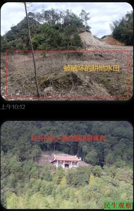 另外,村书记还将自己的乌山茶叶合作社以每年4.5万元的价格出租给村集体,号称“私人旅游景区的屏峰岩也以6万多的价格租给村集体。但实际上乌山茶叶合作社和屏峰岩并没有为村里贡献一点收入。山脚下的村落连盏路灯都没有(别的村都有),村集体仅有的一点资金都进了村书记个人腰包。