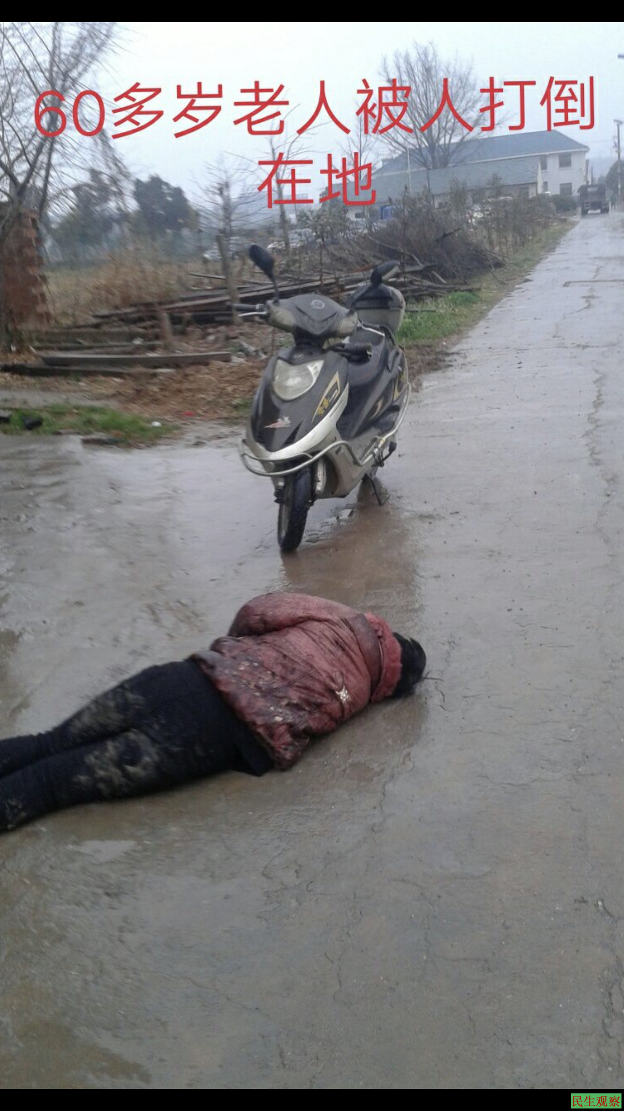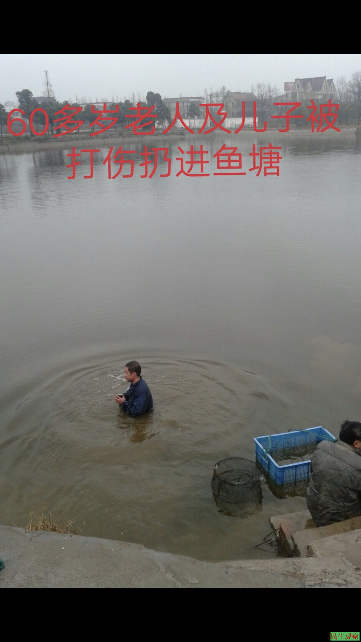 2014年1月8号,合法私有财产被涉黑集体故意毁坏。现场父亲孟高生,弟弟孟宪瑞被不法分子打伤后扔进鱼塘,母亲张慧芹被打伤。