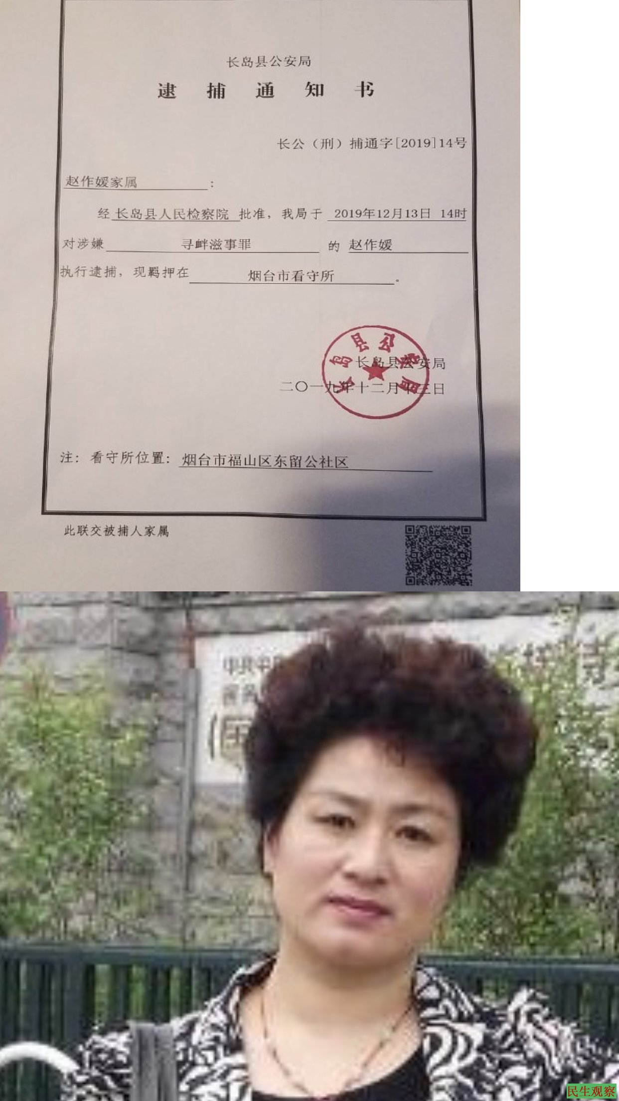 2019年11月7日赵作媛被网上通缉抓捕,以寻衅滋事罪刑事拘留,同年12月13日逮捕,现羁押在烟台市看守所。