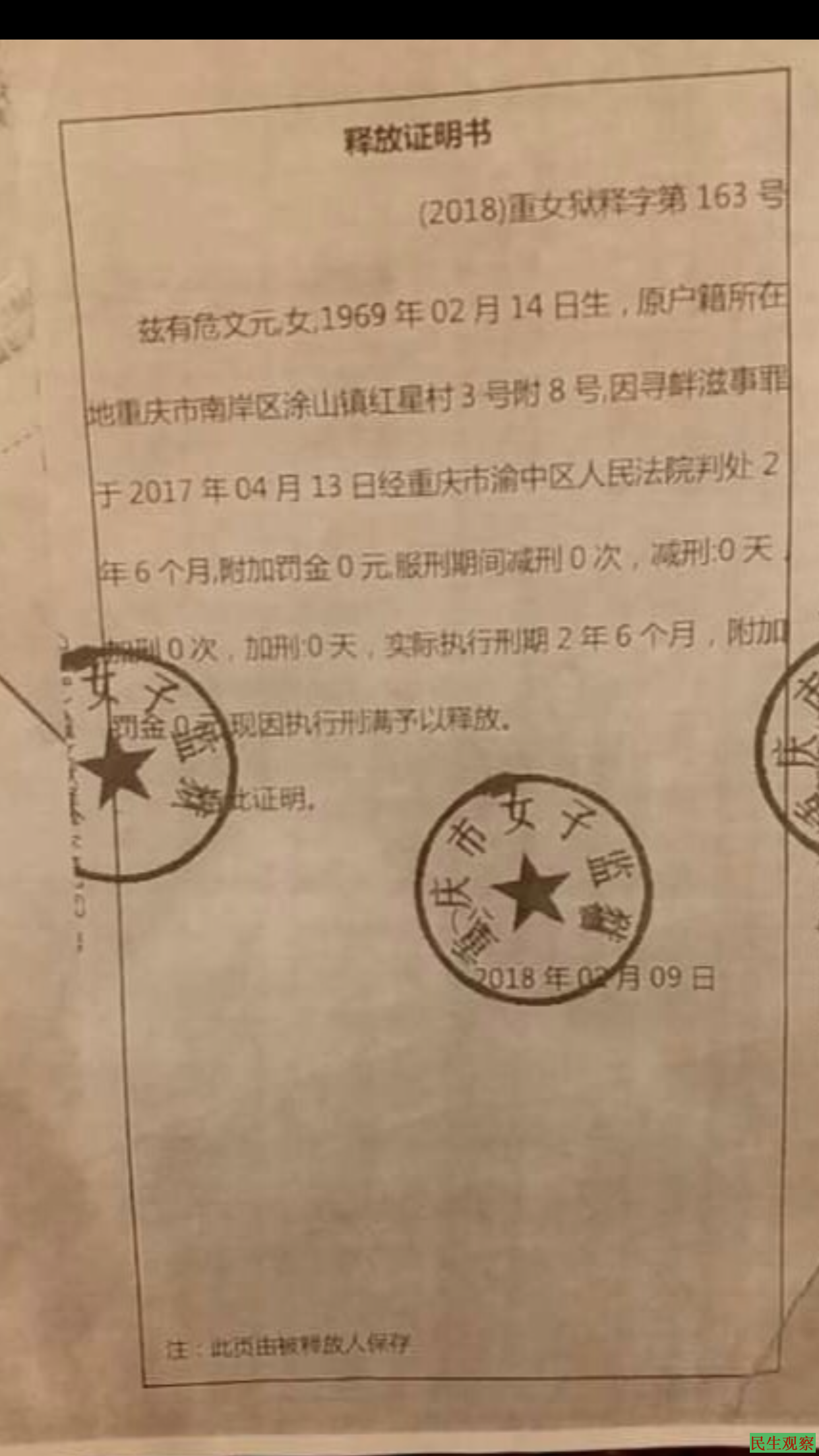 2015年8月11日在重庆报业集团公司报道的,处处有着落,事事有回音,假新闻解决了23万件,被重庆市南岸区公安分局非法抓捕,同日由重庆市公安局渝中区分局执行逮捕。寻衅滋事罪被判刑两年半。